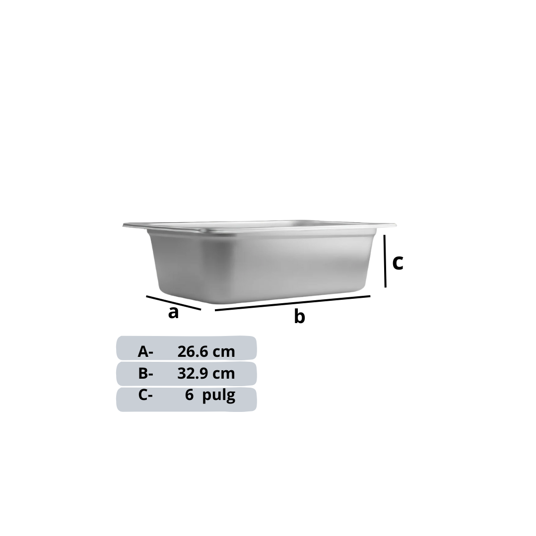 - Material: Inserto de acero inoxidable calibre 24, ideal para uso de baño maría o mesa fría.