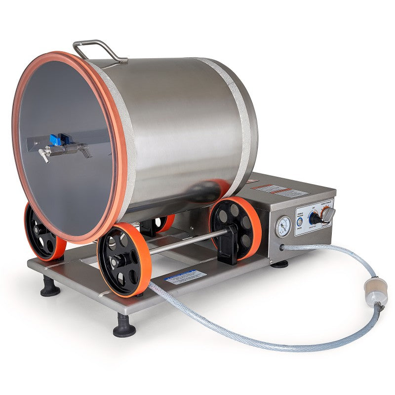 Marinadora al vacío de acero inoxidable con capacidad de 25 Kg ideal para todas las aplicaciones de marinado de carnes y mariscos.