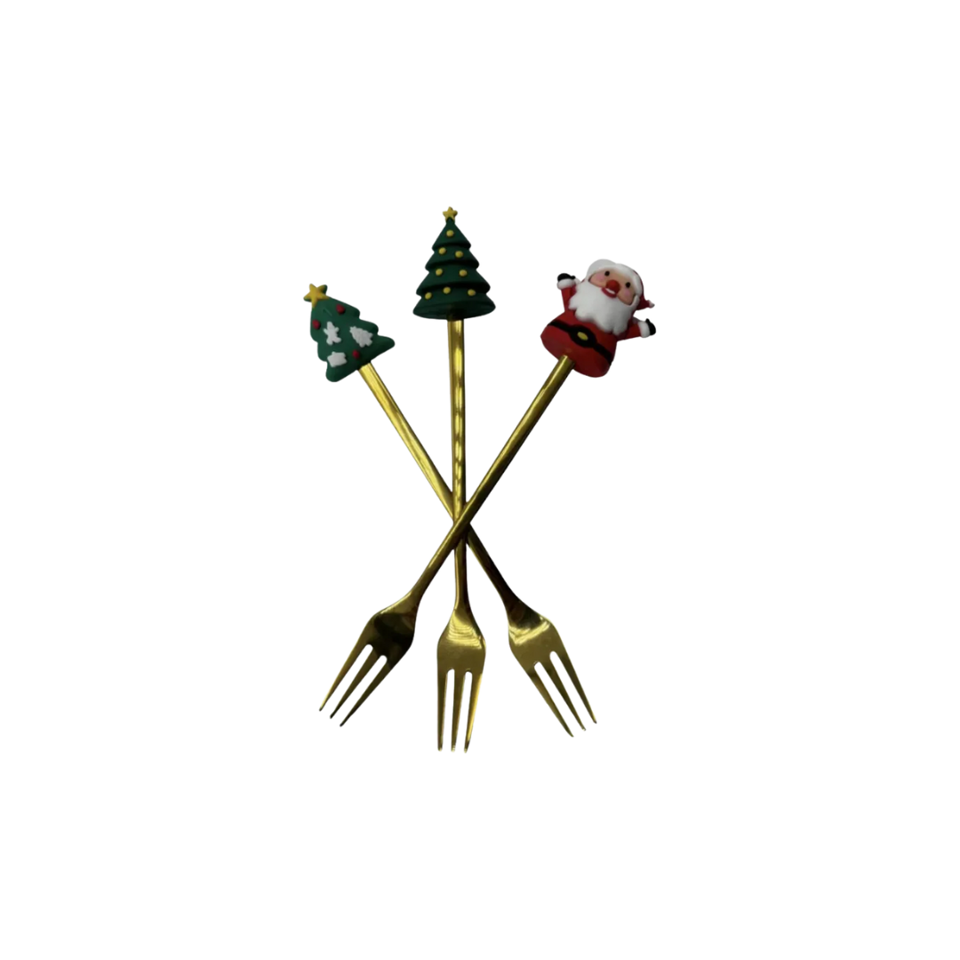 Incluye figuras de Papá Noel, árboles de Navidad, calcetines, renos, estrellas. Las cucharillas de café y los tenedores de postres con elementos navideños añaden un toque festivo a su Navidad.