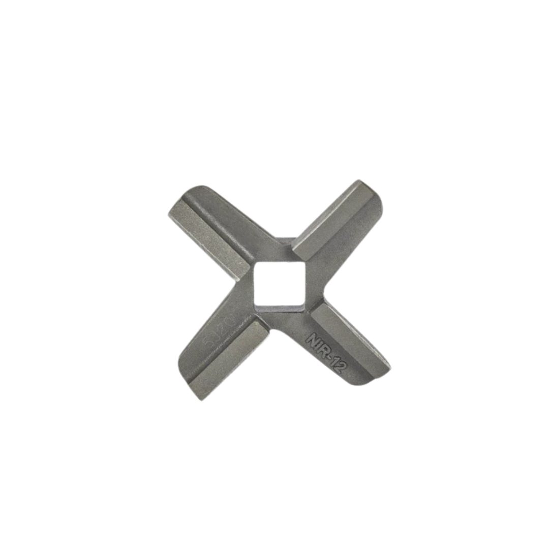 - NIR (Navaja Inoxidable Recta): Similar a la NI en material (acero inoxidable), pero su diseño de hoja es recto en lugar de curvo. Este diseño permite un "ataque más agresivo" a la carne, lo que ayuda a minimizar los tiempos de molienda en volúmenes medios de producción.